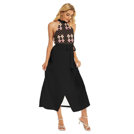 AC KAMI Women's Wrap Hem Belted Halter Dress