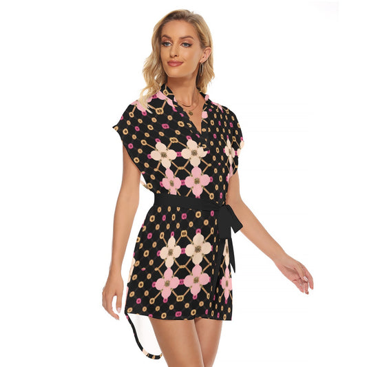 AC KAMI Women's Short Sleeve V-neck Dress