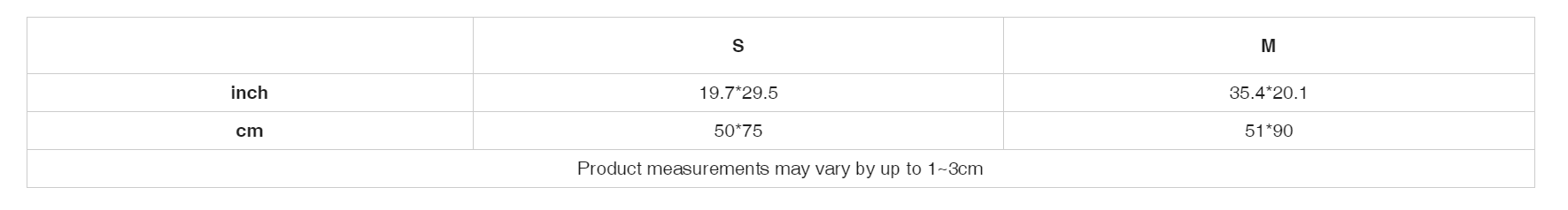 | cm | 50*75 | 51*90 |